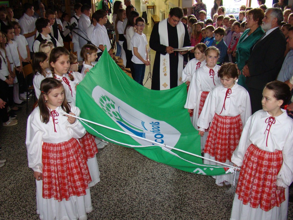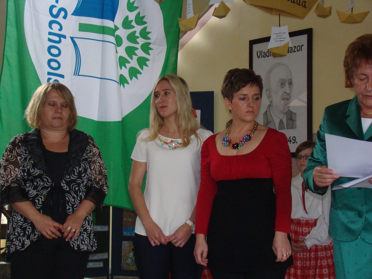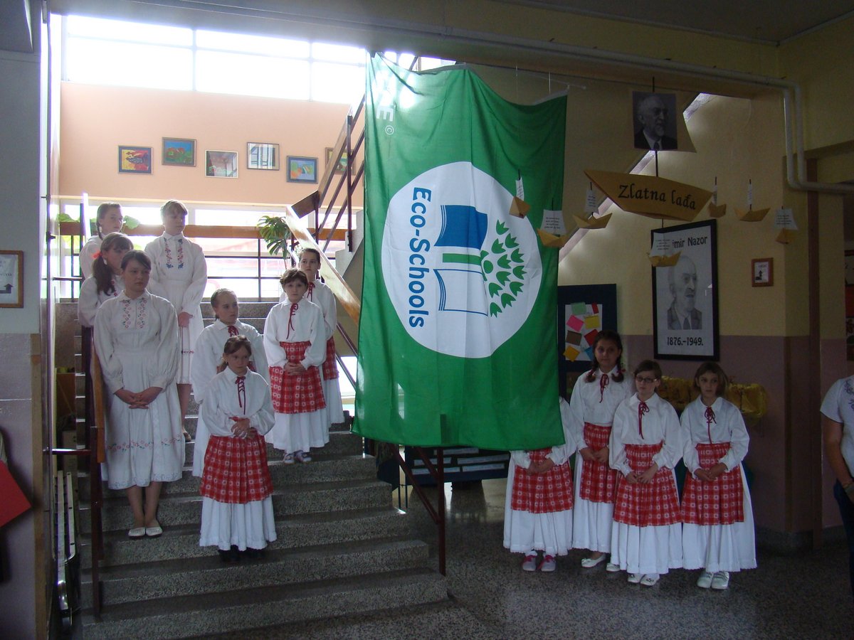 Na kraju programa upriličen je čin svečanog podizanja zelene zastave Eko-škole, budući da je naša škola ove godine obnovila srebrni status. OŠ „Vladimir Nazor“ nositelj je statusa Eko-škole od 2006. godine, a kum zastave je Općina Budinščina. Na ekološkim programima te ekološkoj prosvjećenosti OŠ „Vladimir Nazor“ radi kontinuirano, u taj su proces uključeni svi učenici i učitelji, a važno je naglasiti i kako se u potpunosti poštuju procedure Međunarodne Eko-škole i udruge „Lijepa naša“. Čast podizanja zastave pripala je Antoniju Pažuru, višestruko nagrađivanom učeniku koji se u proteklih nekoliko godina istaknuo na državnim natjecanjima mladih tehničara. Nakon završetka svečanog dijela programa, na školskom igralištu započele su sportske igre za učenike.