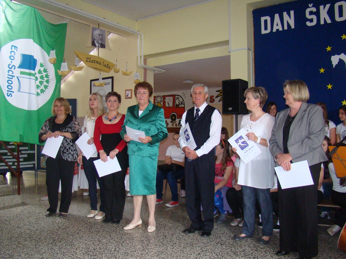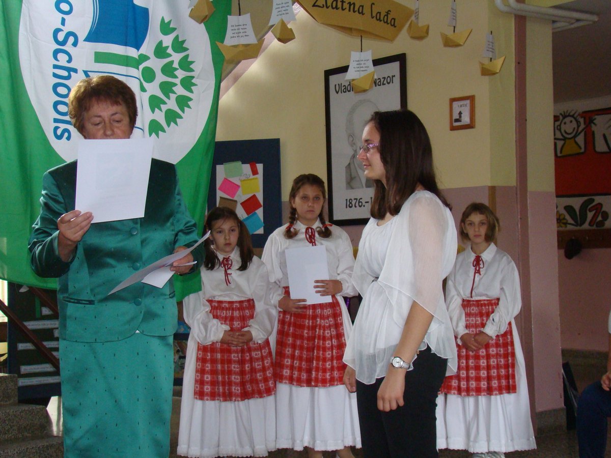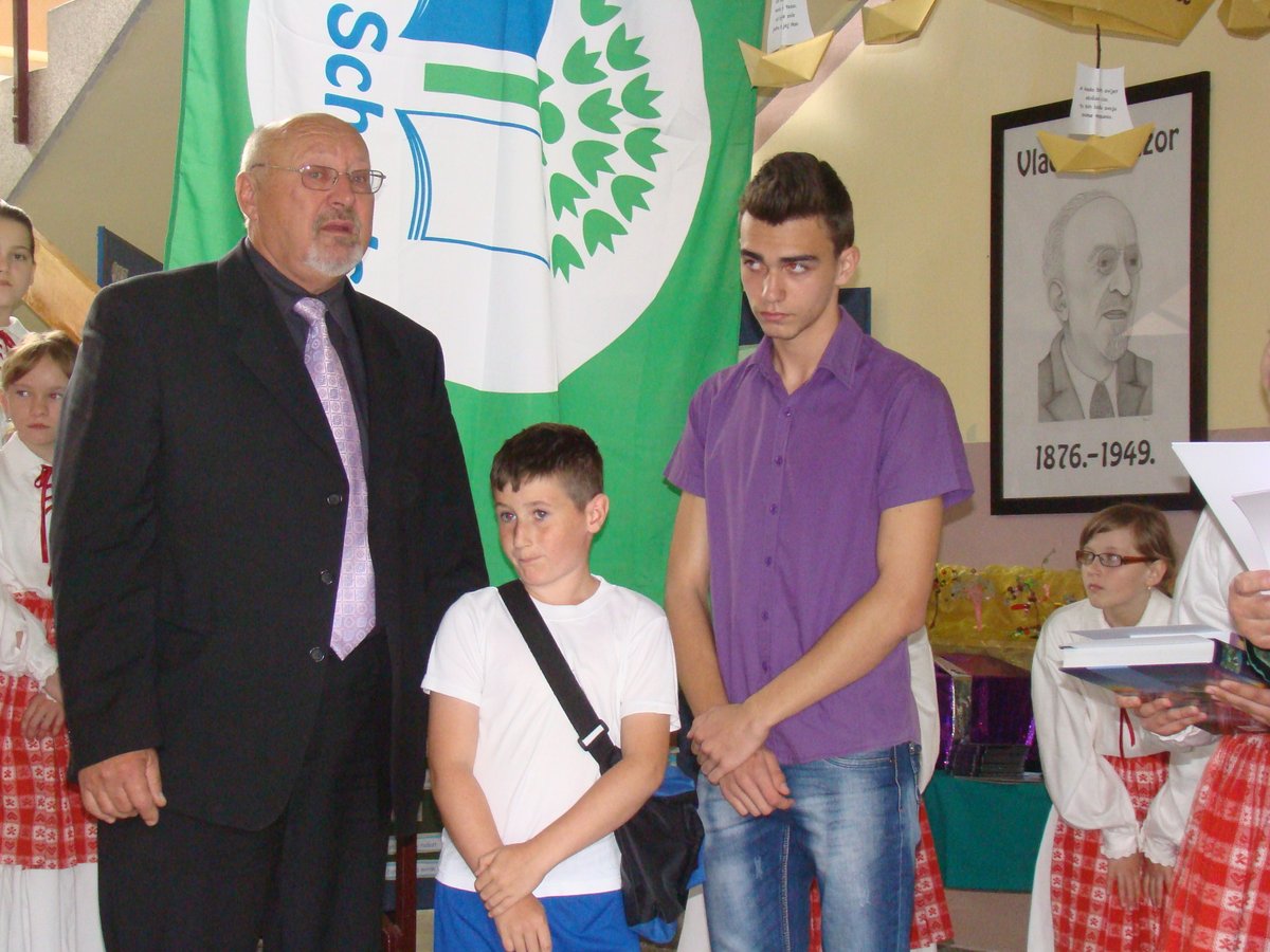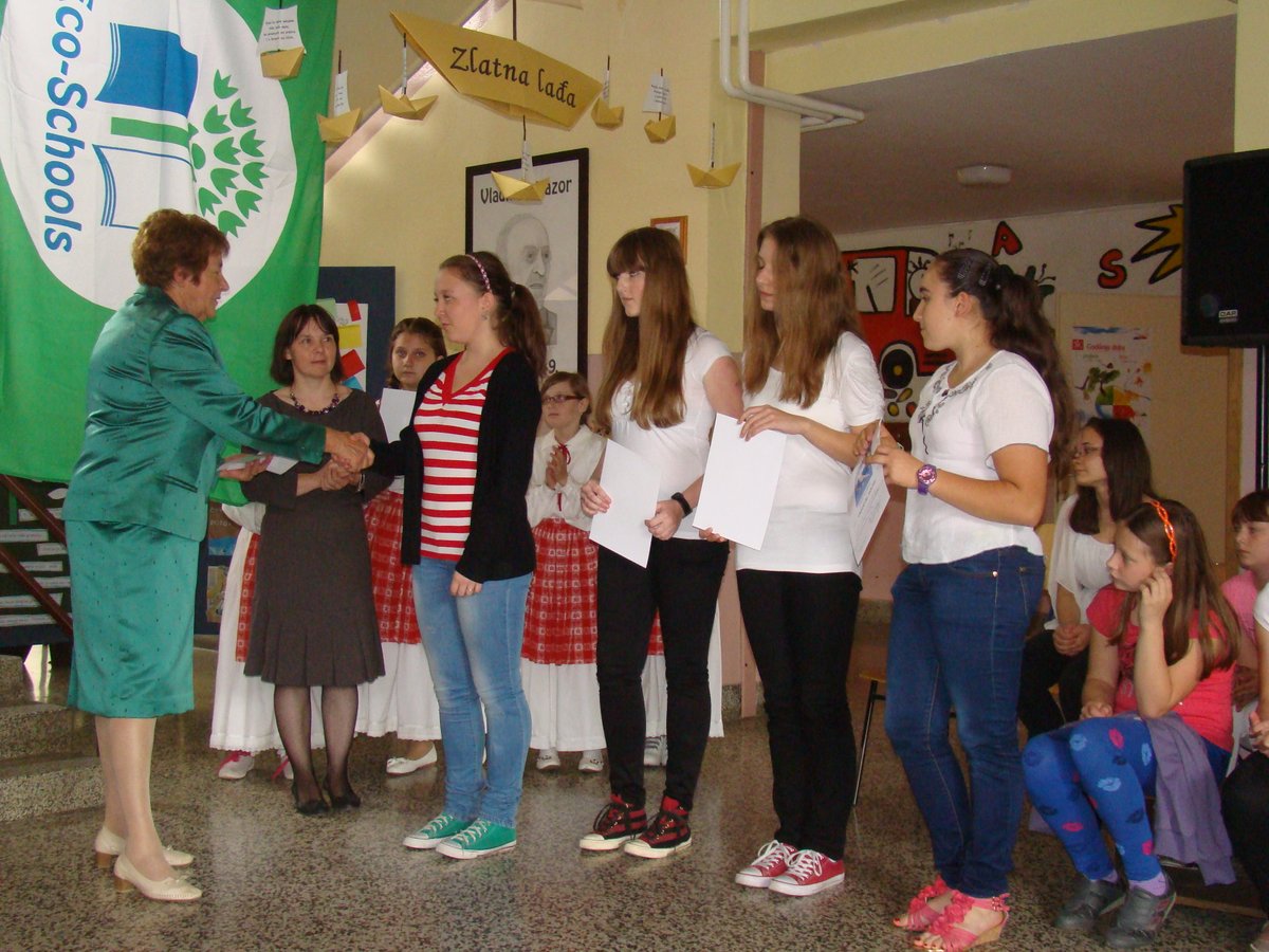 Na kraju programa upriličen je čin svečanog podizanja zelene zastave Eko-škole, budući da je naša škola ove godine obnovila srebrni status. OŠ „Vladimir Nazor“ nositelj je statusa Eko-škole od 2006. godine, a kum zastave je Općina Budinščina. Na ekološkim programima te ekološkoj prosvjećenosti OŠ „Vladimir Nazor“ radi kontinuirano, u taj su proces uključeni svi učenici i učitelji, a važno je naglasiti i kako se u potpunosti poštuju procedure Međunarodne Eko-škole i udruge „Lijepa naša“. Čast podizanja zastave pripala je Antoniju Pažuru, višestruko nagrađivanom učeniku koji se u proteklih nekoliko godina istaknuo na državnim natjecanjima mladih tehničara. Nakon završetka svečanog dijela programa, na školskom igralištu započele su sportske igre za učenike.